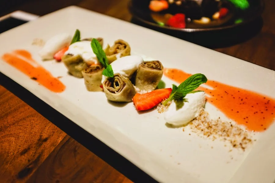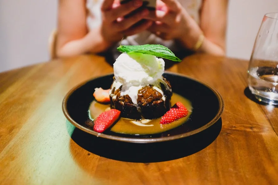 Some pondering was done and recommendations were made from someone who seemingly frequents Low Key a little too often. New dishes were tried and tested, wine was had and snaps to jealous friends were taken. The gyoza was placed on our table first. Next came the mantou buns (seriously too good although I don't think anything will beat the first time I tried them) and our satay and kimchi salad soon followed. The lovely night was wrapped up with an azuki and strawberry crepe and a five spice sticky date pudding with warm butterscotch and a generous dollop of ice cream.