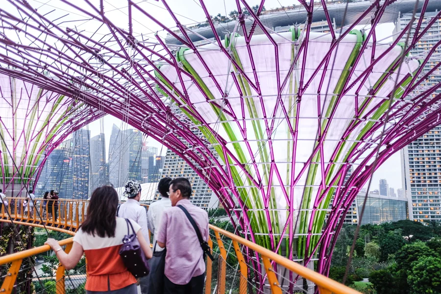 I would suggest visiting just before sunset and staying until light becomes dark, as the trees are a sight to see in the day time, offering a tropical and stripped back feel. At night the grove comes alive in a myriad of colours and lights. Don't miss out on the opportunity to have the best of both views. Be forewarned, crowds do however accumulate in the evenings, but the view is incredibly worth it.