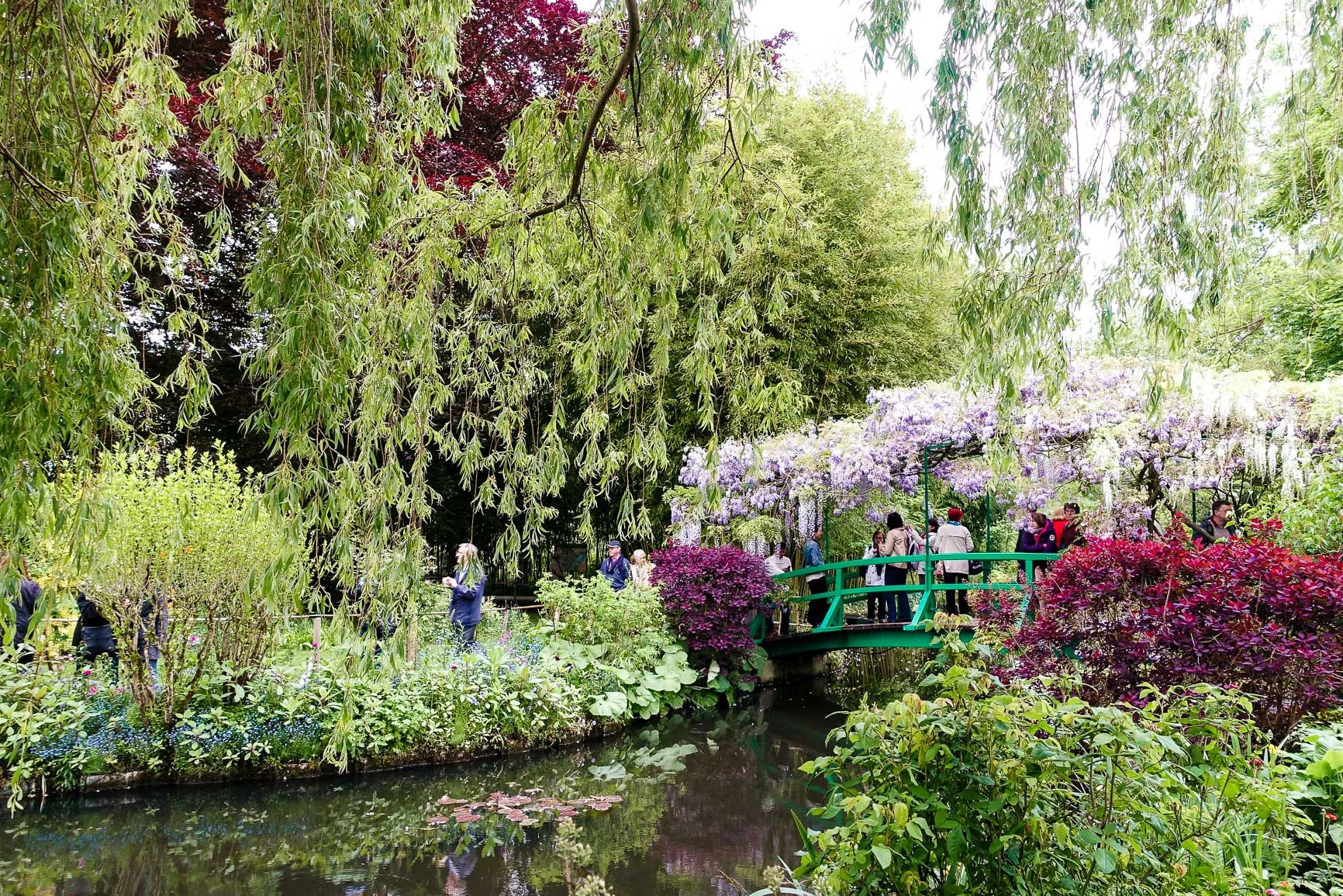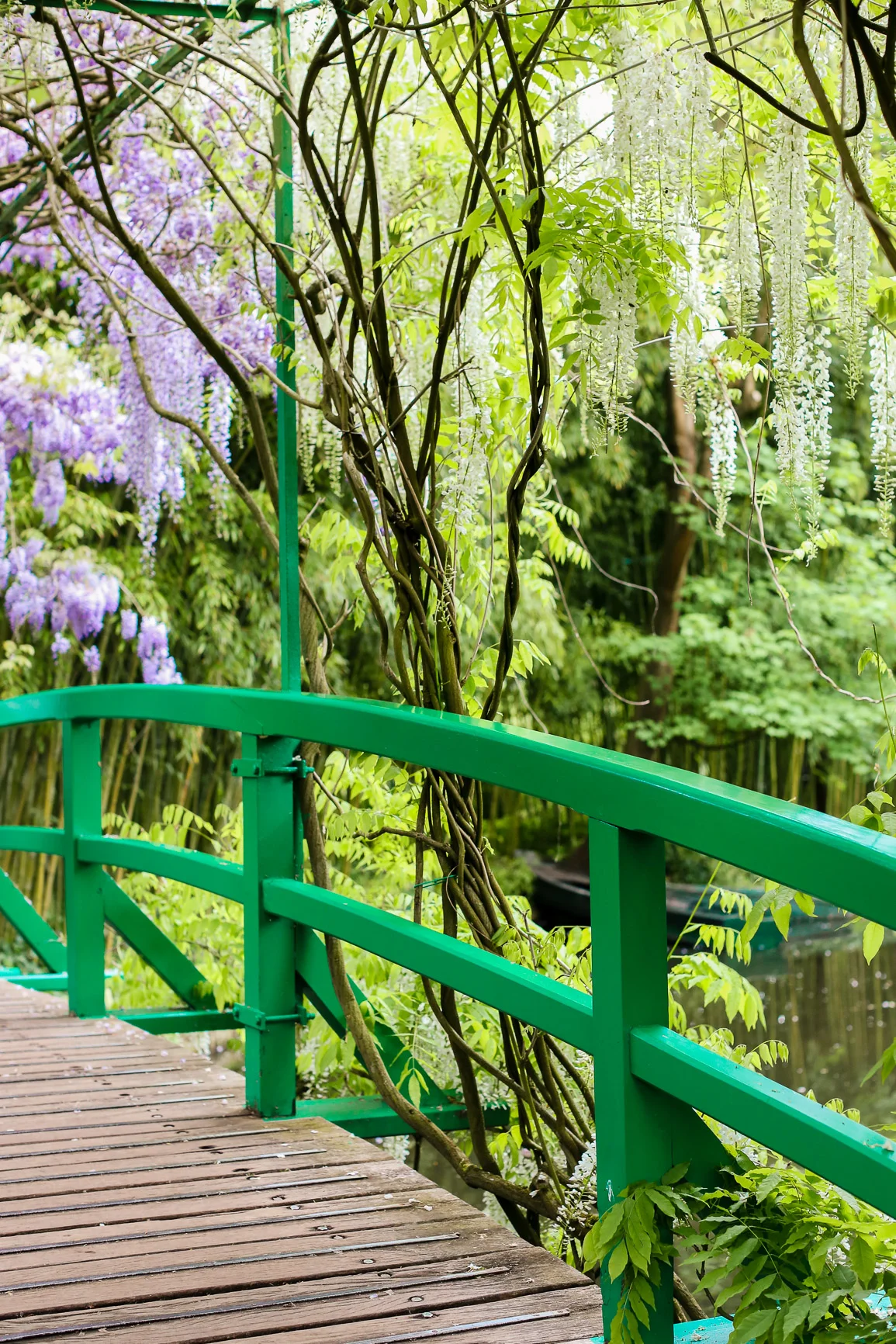 We were in soon enough however, a brief interlude in the museum and we were outside again, but on the other side of the stone wall, among the real floral action. The trip had worked out nicely, there is no better time than the Parisian Spring to visit Monet's home. Even the wisteria over the Japanese Bridge were in full bloom, the buzzing of bees in the cool air drowned out by the excited couples and families walking across the bridge.